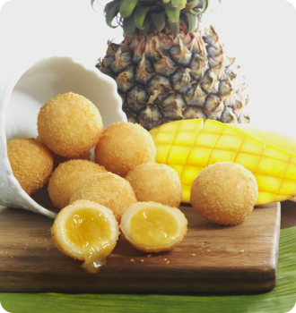 | Our Golden Ball range features machine-encrusted ball-shaped products, available with or without filling, then coated with breadcrumbs, sesame seeds, or other dusting for added texture.